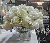 Cote Noire Luxury Centrepiece 37 Rose Bud Bouquet - Green & White - Silver Badge - CPRB12