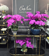Each life-like Orchid Bouquet has been skilfully hand crafted. Each petal has a special natural coating to give them a true to life touch & appearance. Finished off in an oval vase with a gold Cote Noire signature badge.