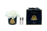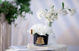 Each life-like perfumed Five Rose has been skilfully hand crafted and is set in gel giving it the appearance of water. Each petal has a special natural coating to give them a true to life touch and appearance and arranged in a clear vase with a gold signature Cote Noire badge.