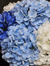 ** DISCONTINUED** Cote Noire Provence Hydrangea Bouquet - Large Mixed Blue with Silver Badge - PHB03L