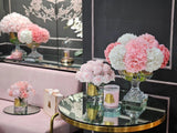 Each life-like perfumed Provence Hydrangea Bouquet has been skilfully hand crafted and is set in gel giving it the appearance of water. Each petal has a special natural coating to give them a true to life touch & appearance. Arranged in Luxury a vase with a gold Cote Noire signature badge.