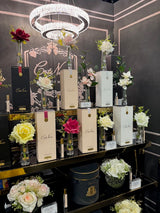 The special gel formula is hand poured, and each flower stem is cut to size and arranged by one of our passionate floral designers. Each is then perfumed by hand, individually checked & finally hand boxed.