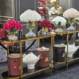 Each life-like perfumed Versailles French Rose Bouquet has been skilfully hand crafted and set in gel giving it the appearance of water. Each petal has a special natural coating to give them a true to life touch & appearance. Thirty-one roses have been arranged in a luxury vase with a gold Cote Noire signature badge.